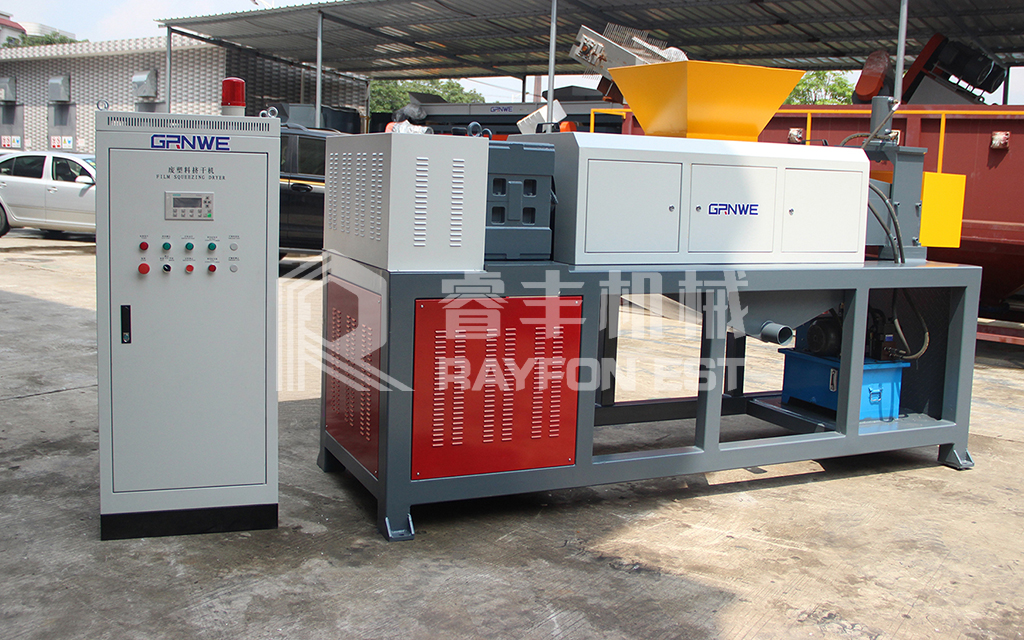 本产品采用螺旋挤压脱水原理,配用进口油压装置,配装PLC触屏专用控制柜。用于塑料薄膜、塑料袋、蛇皮带、太空袋、薄状的软质类塑料进行挤干脱水工作。操作简易,挤干效果好。采用螺旋挤压脱水结构设计,配装专用电箱,液压感应式开口自由控制挤干效果。塑料薄膜挤干机的研发成功,解决了塑料PE薄膜、PE塑料袋、PP蛇皮袋、太空袋等软质类塑料挤干脱水难的问题,已成为废旧塑料薄膜、编织袋破碎清洗回收过程中不可缺少的新型设备。