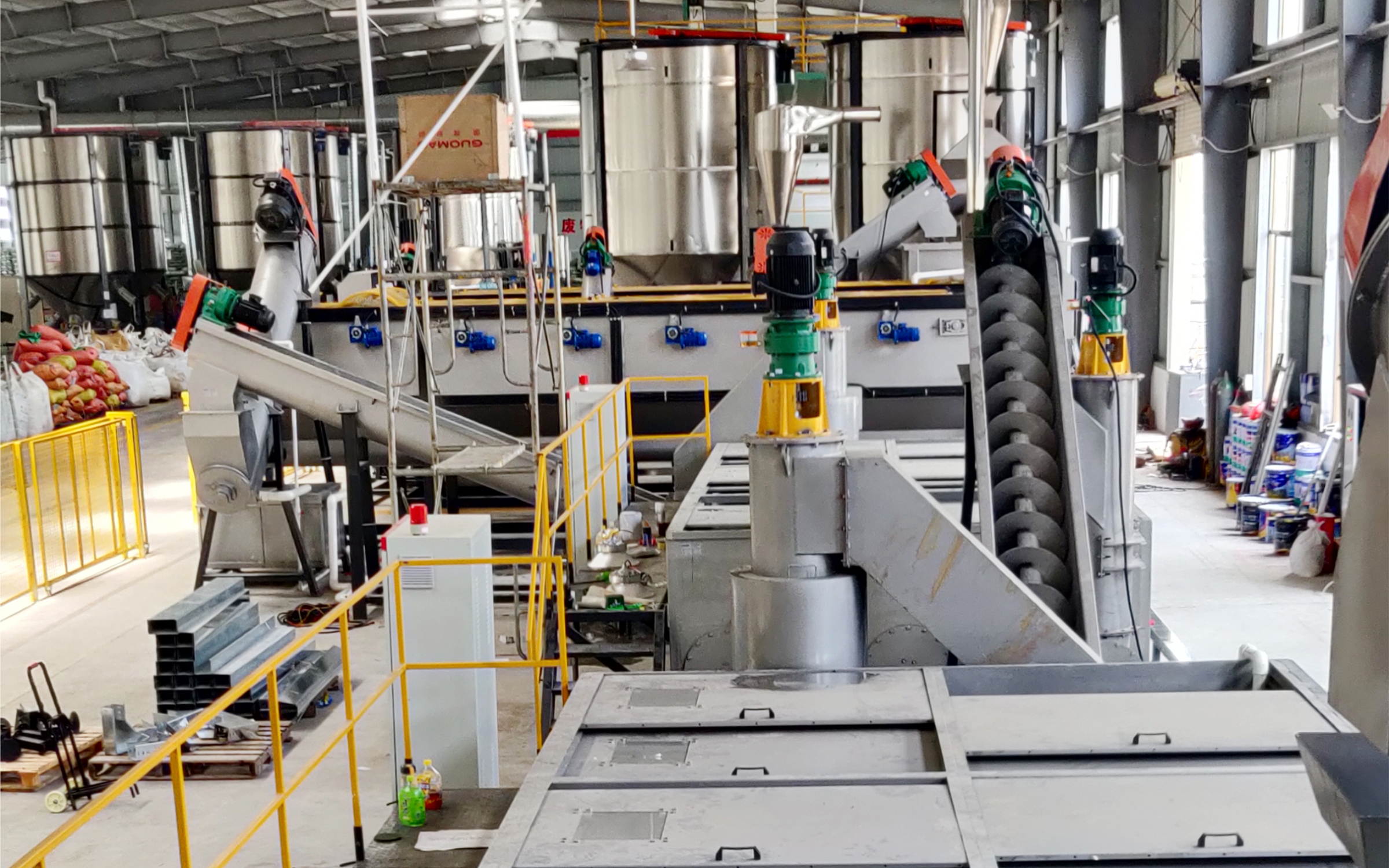 本项目针对 PP 餐盒高油污、气味重的特性,专门开发出具备高效去油污与沉浸式去味功能的热洗装备。该装备不仅具有生产高效低耗、操作简便稳定的显著特点,还配套了 “低粉末产生” 的工艺,目前已在多家客户处得到实际应用。