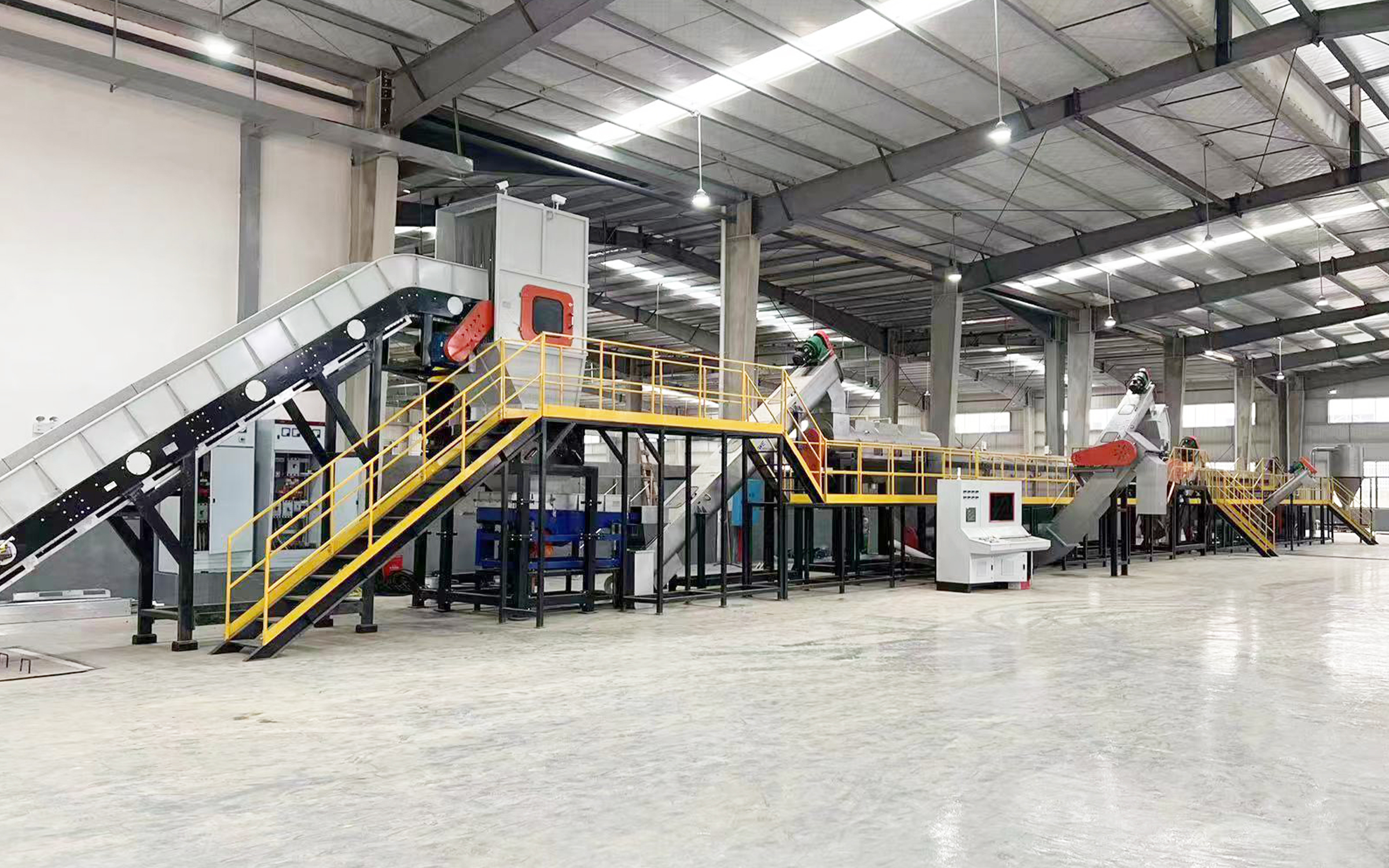 1、配备四轴撕碎机对大件中空类塑料进行预碎处理,既能提升生产线处理量,又能有效延长破碎机刀具的使用寿命。该四轴撕碎机具有运行稳定、处理高效、噪音低等特点。